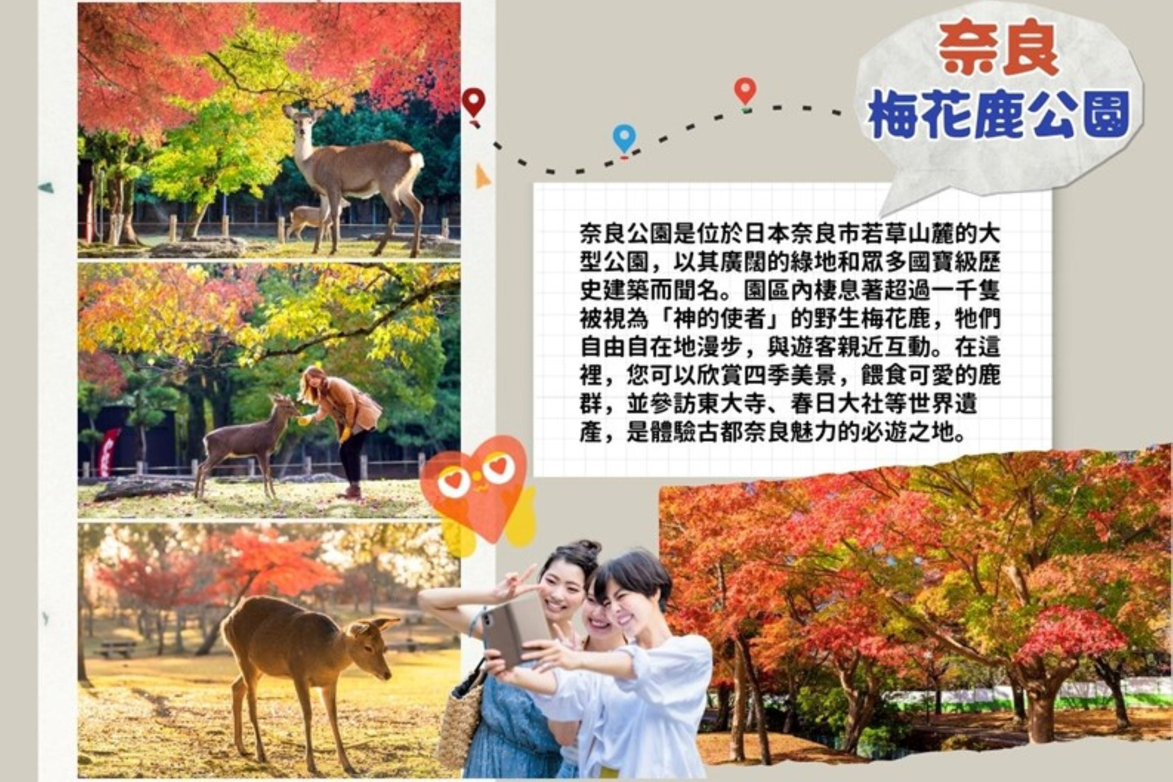 【奈良梅花鹿公園】位於奈良市中心區域東側,是一座佔地相當寬廣的公園。 在面積達660公頃的廣大腹地中,有許多奈良的代表性景點,包括東大寺、興福寺、春日大社、奈良國立博物館、正倉院等等。 提到奈良公園,就讓人想到小鹿,據說約有1,000隻鹿棲息於此,牠們全是被指定為國家自然紀念物的野生動物。