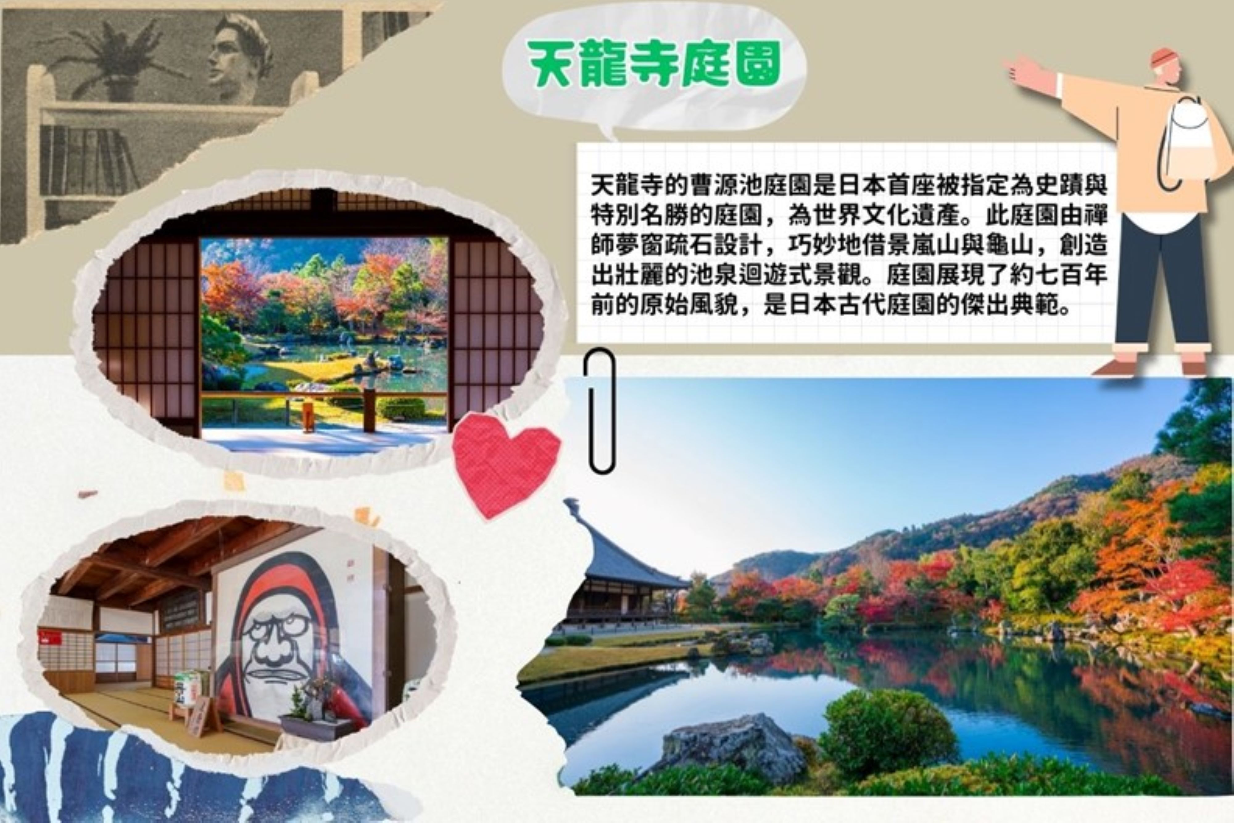 【天龍寺庭園】世界遺產級的禪宗名寺,其曹源池庭園為枯山水與池泉庭園合體,秋季時被火紅楓葉包圍,展現極致的日式庭園美學,是京都賞楓的私藏祕境。