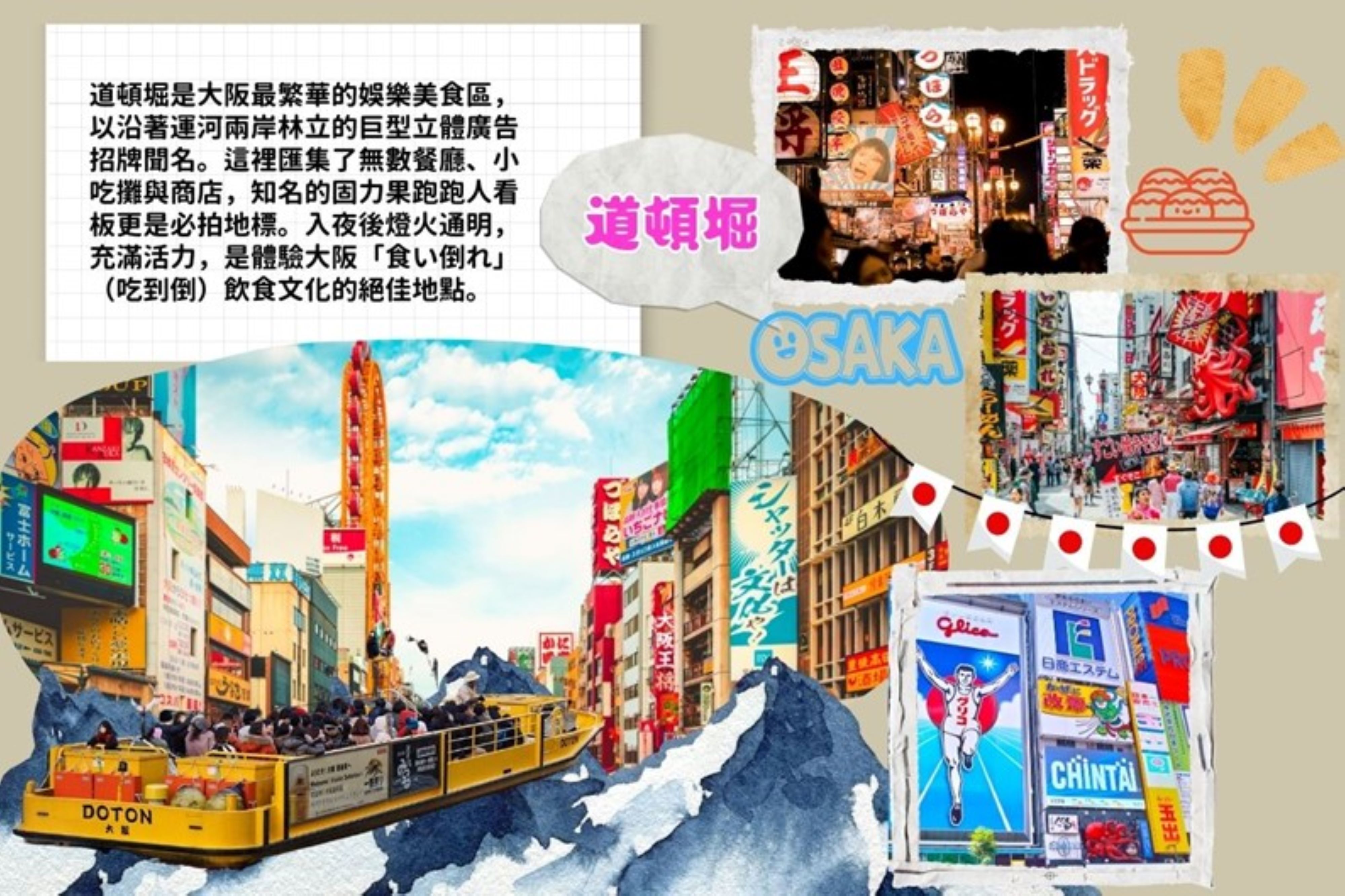 【道頓崛】號稱為日本廚房的大阪,這裏有無窮無盡的美食,是大阪美食的代表地方,想吃美食的人絕對不能錯這裏。在這裡,到處都見到各種美食的招牌。最出名的是那大螃蟹招牌,可說是道頓崛的標誌。